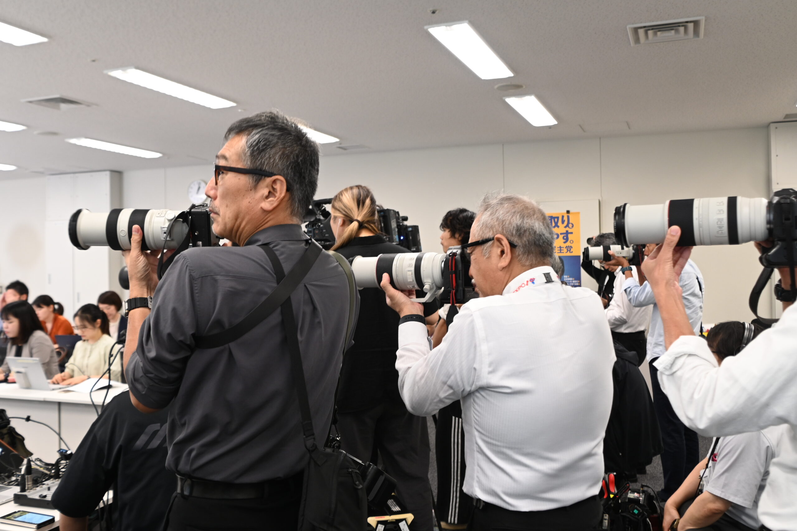 「玉木総理」に備えて資料写真狙いのスチールカメラマンが詰めかける。=7日、衆院会館 撮影:田中龍作=