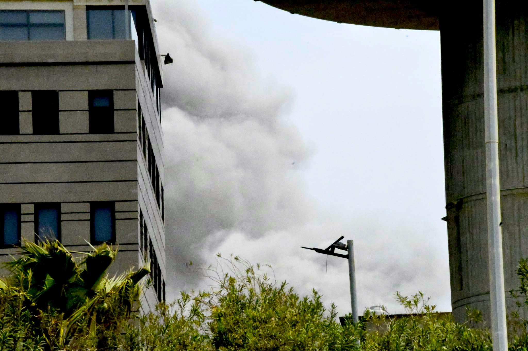 イスラエル軍の爆撃。=5日、ベイルート郊外 撮影:田中龍作=