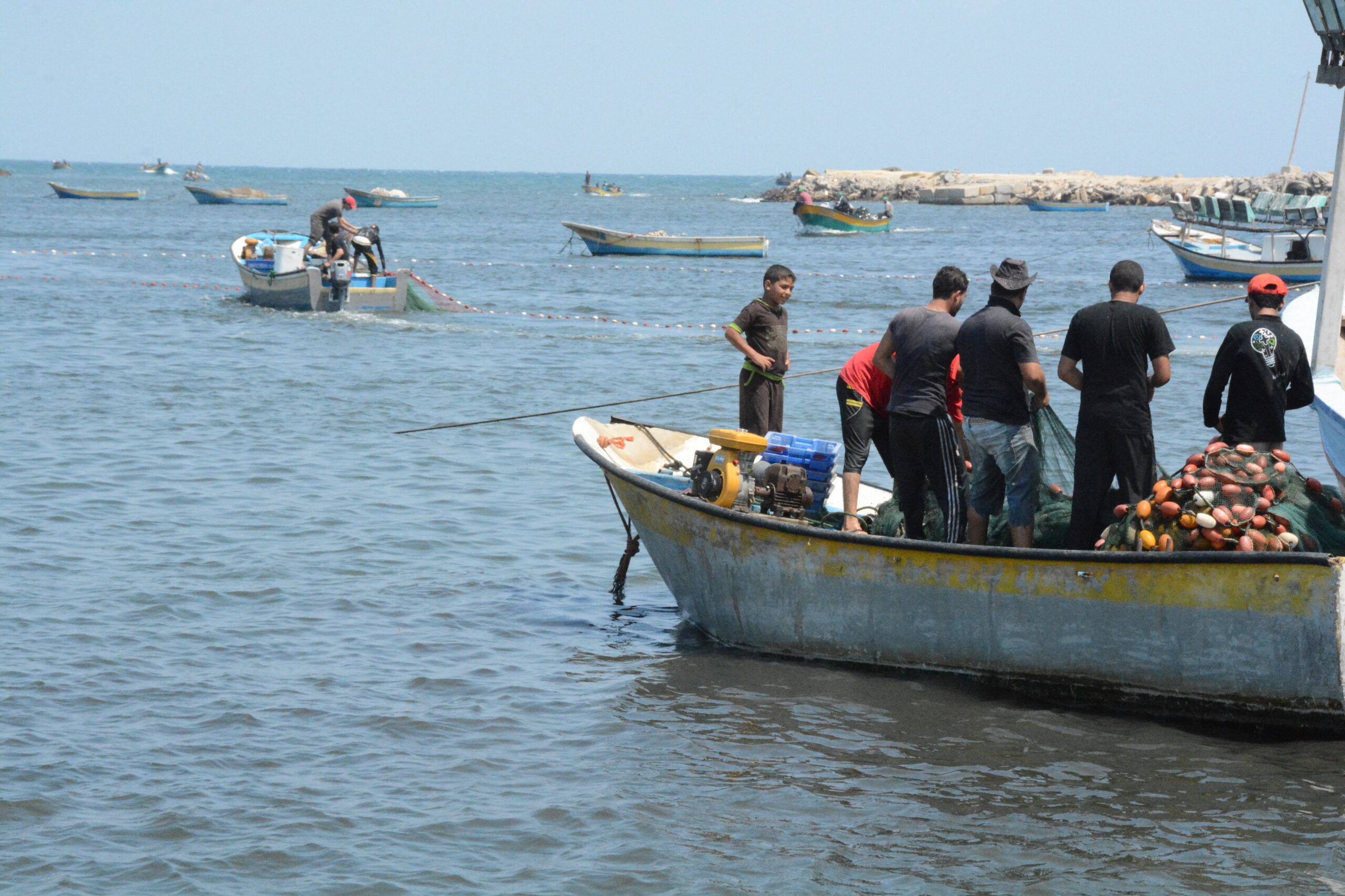 停戦の合間、漁に出たガザの漁師たち。この海はもう帰ってこないのだろうか。=ガザ港 撮影:田中龍作=