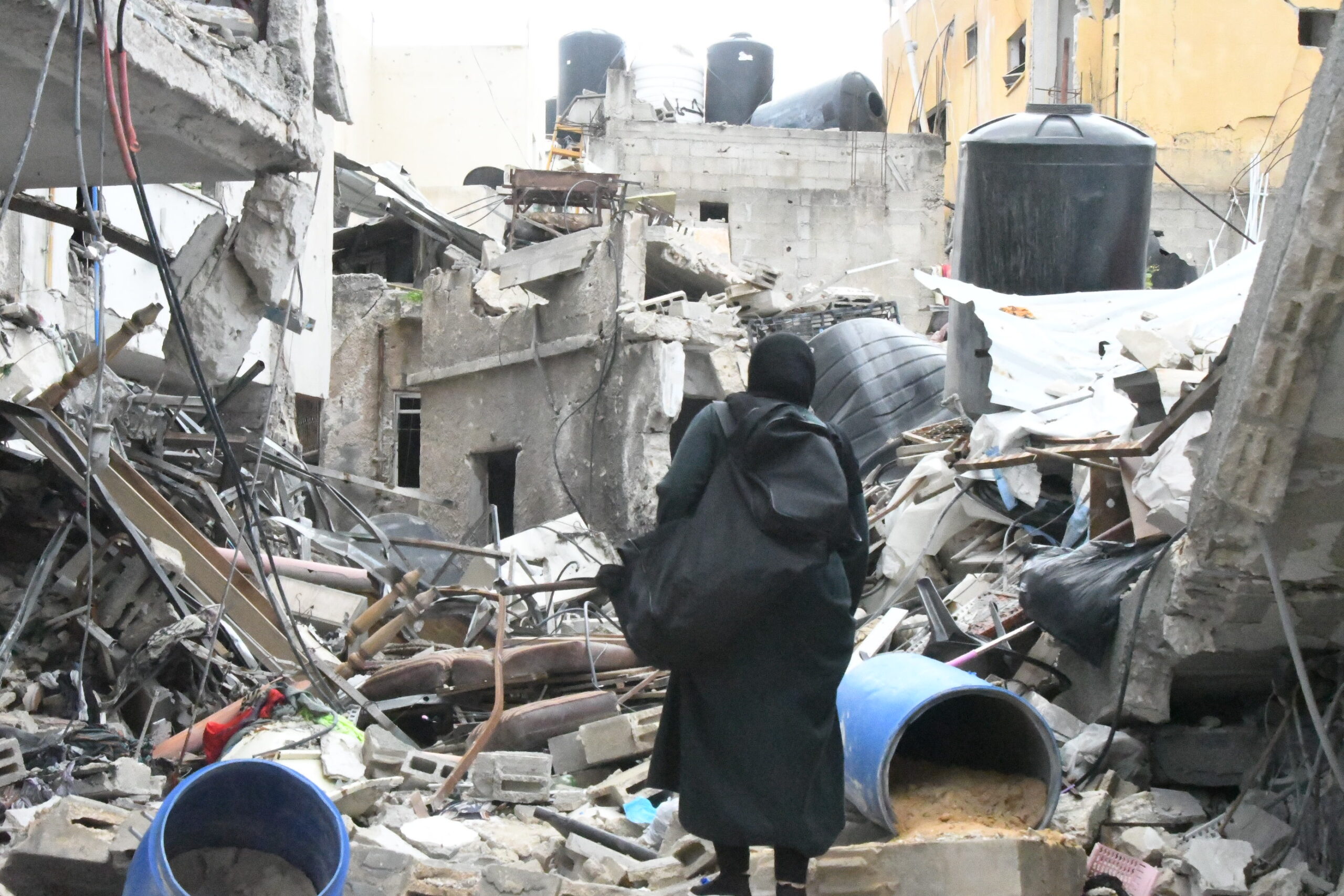 我が家をイスラエル軍に破壊され、彼女は呆然と立ち尽くした。=3月、西岸ジェニン 撮影:田中龍作=