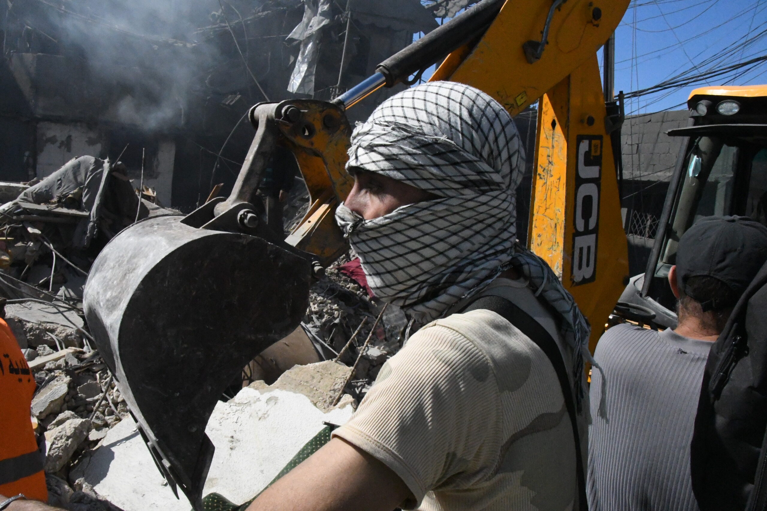 ヒズボッラーの構成員がいた住宅地はイスラエルにミサイル攻撃された。遺体回収作業は殺気だっていた。=2024年10月、ベイルート 撮影:田中龍作=