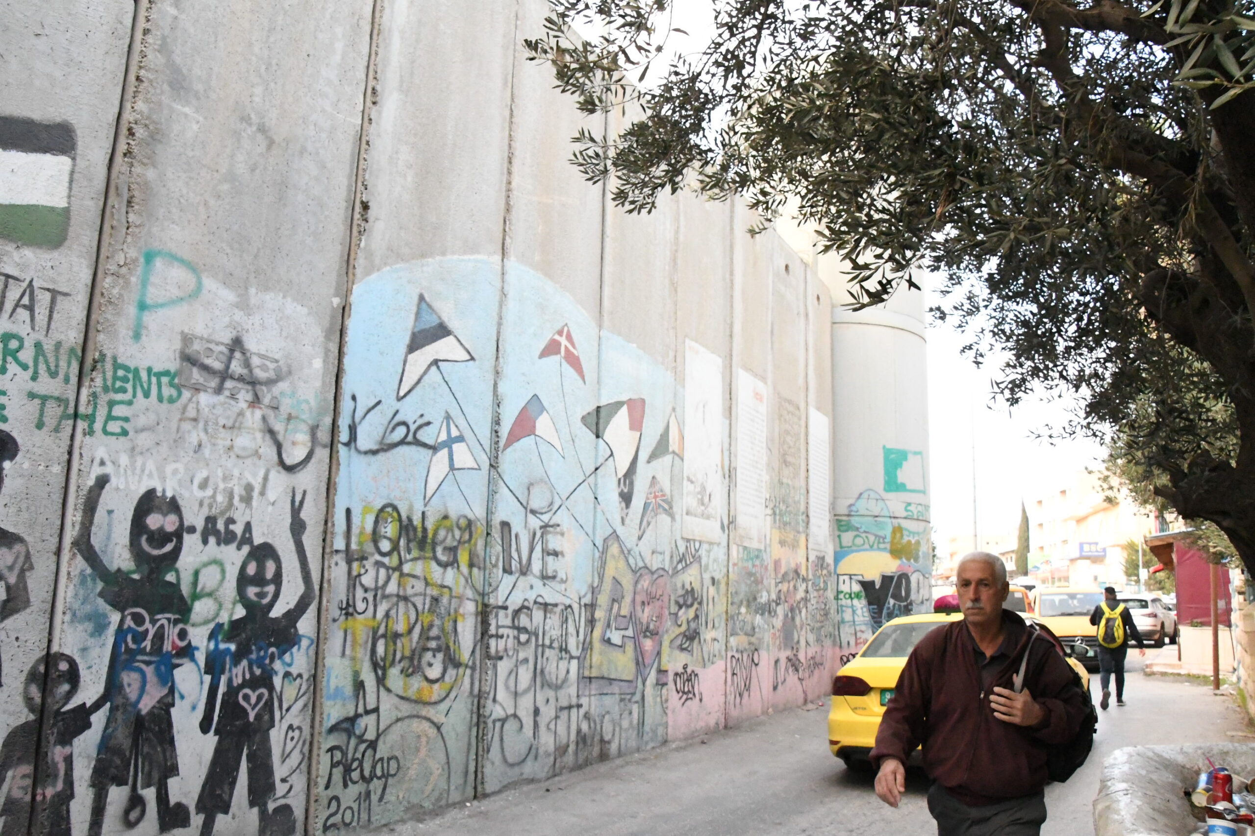 「聖誕教会の地」と言えば、ロマンチックに響く。だがパレスチナ住民はイスラエルが勝手に作った壁に囲い込まれて暮らす。=2022年12月、西岸ベツレヘム 撮影:田中龍作=
