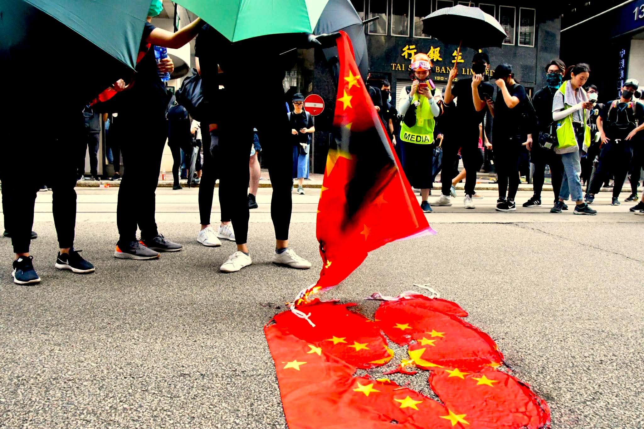 中国国旗を燃やすデモ参加者。高市政権や参政党が進めようとする国旗損壊罪にあたるのだろうか。=2019年、香港 田中龍作=