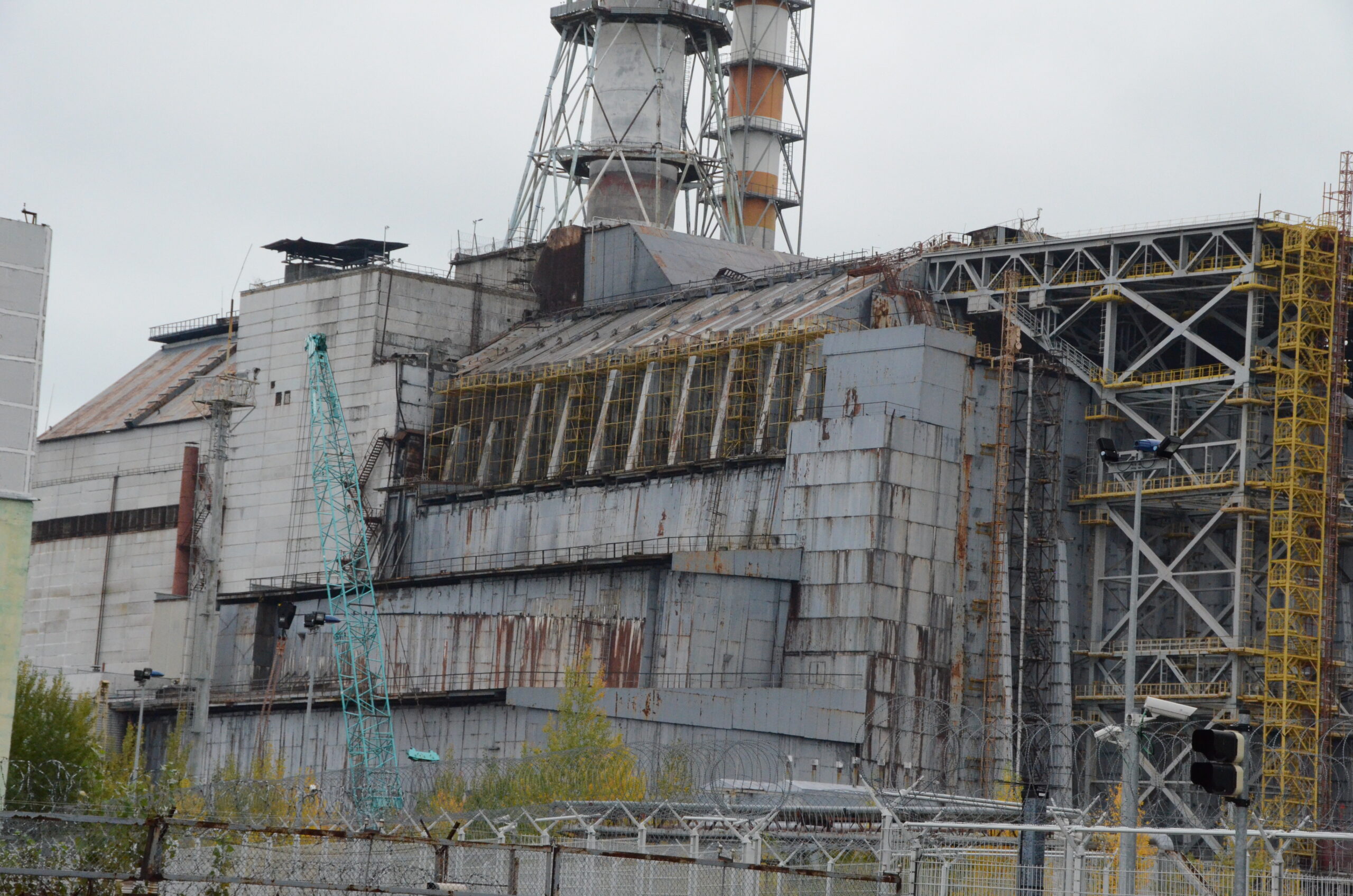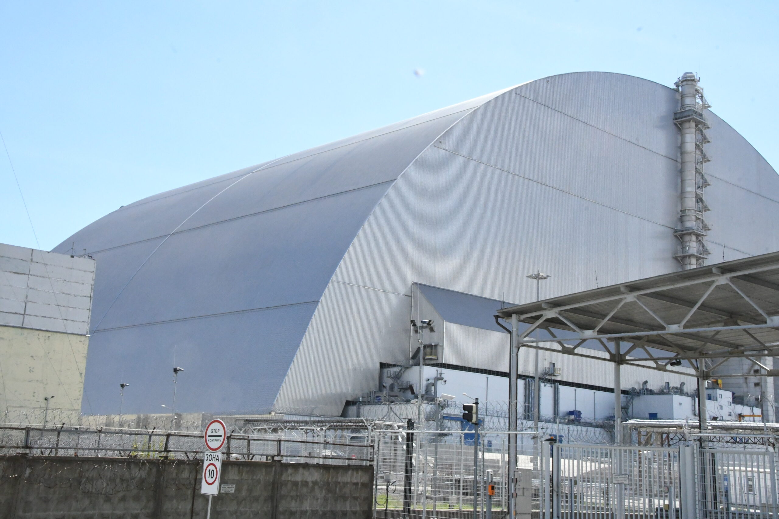10年ぶりに訪れたチェルノブイリ原発はジュラルミンの覆いが被せられていた。何年持つのだろうか。作家の浅田次郎さんは『灰色のマトリョーシカ』と呼ぶ。=2022年、ウクライナ 撮影:田中龍作=