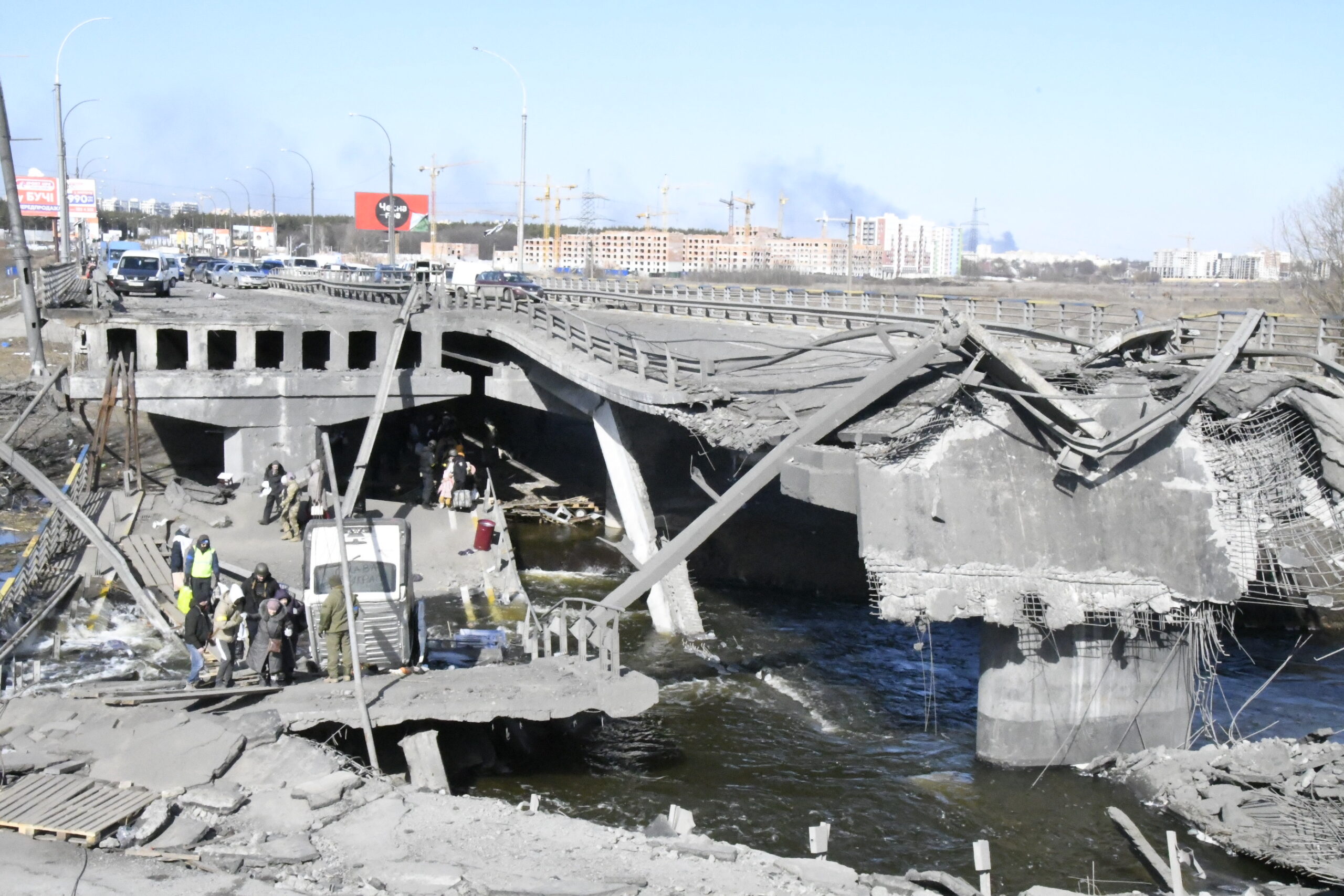 ロシア軍がキーウまで進撃して来ないように、ウクライナ軍は橋を落とした。=2022年、イルピン 撮影:田中龍作