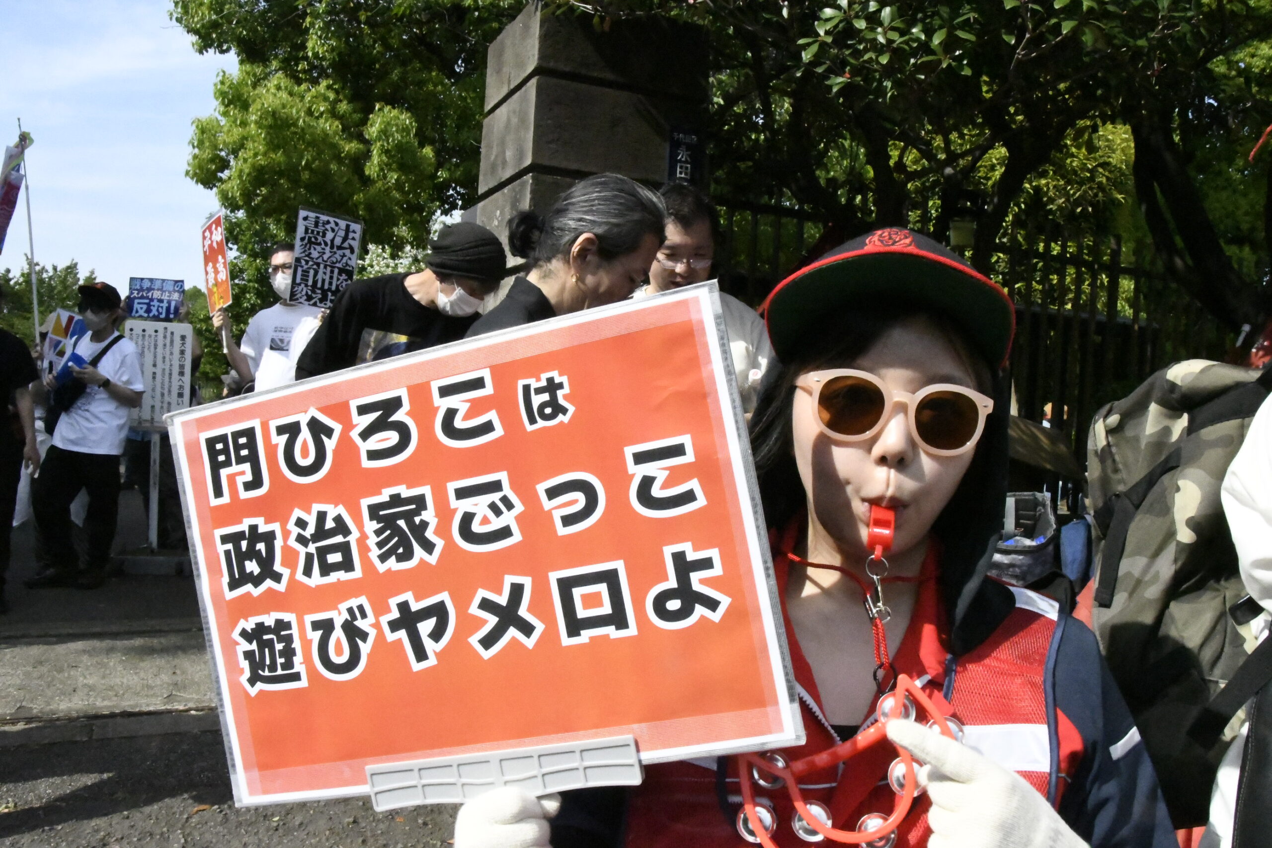 「ごっこ」発言で門ひろこ議員は一気にブレイクした。=19日、国会正門前 撮影:田中龍作=