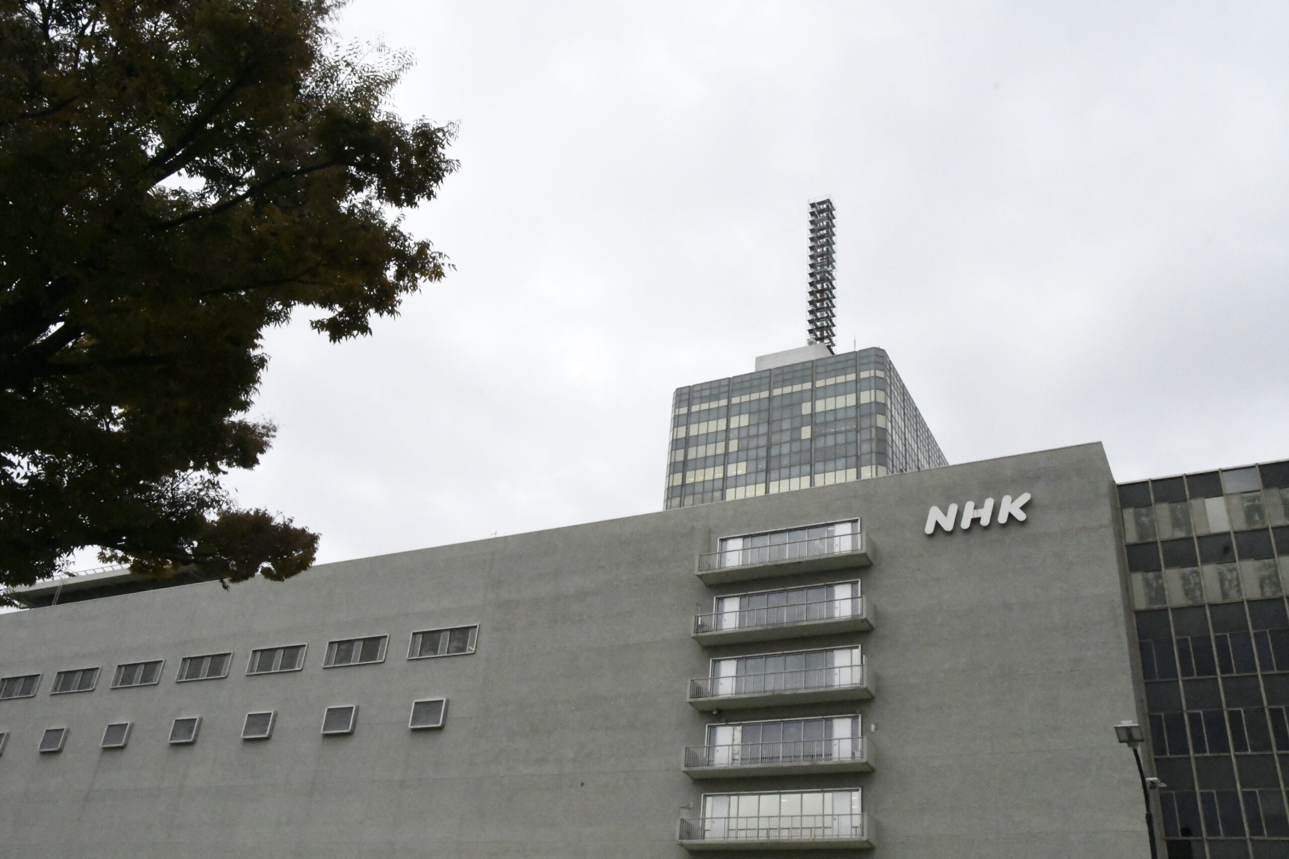 NHK放送センター。巨大な施設の一室で次期会長を決める経営委員会の指名部会が開かれていた。=11日、NHK西口より 撮影:田中龍作=