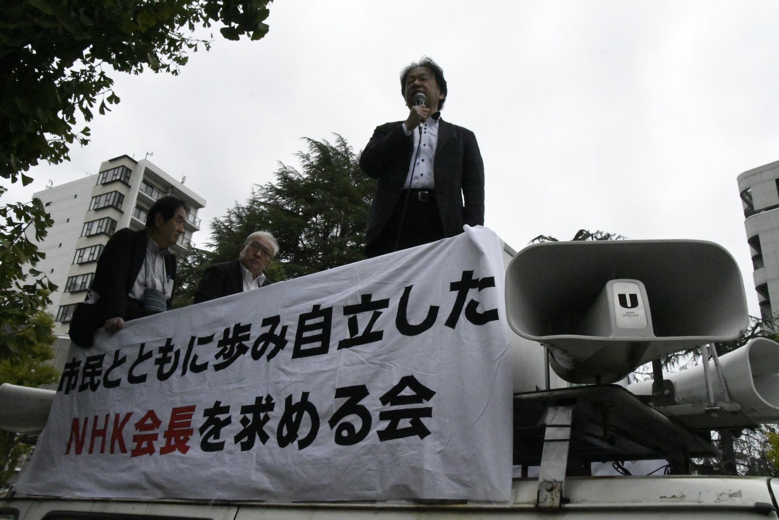それに合わせてNHK・OBやBPO(放送倫理・番組向上機構)の委員を務めたことのあるジャーナリストたちが、NHK西口玄関前で声をあげた-