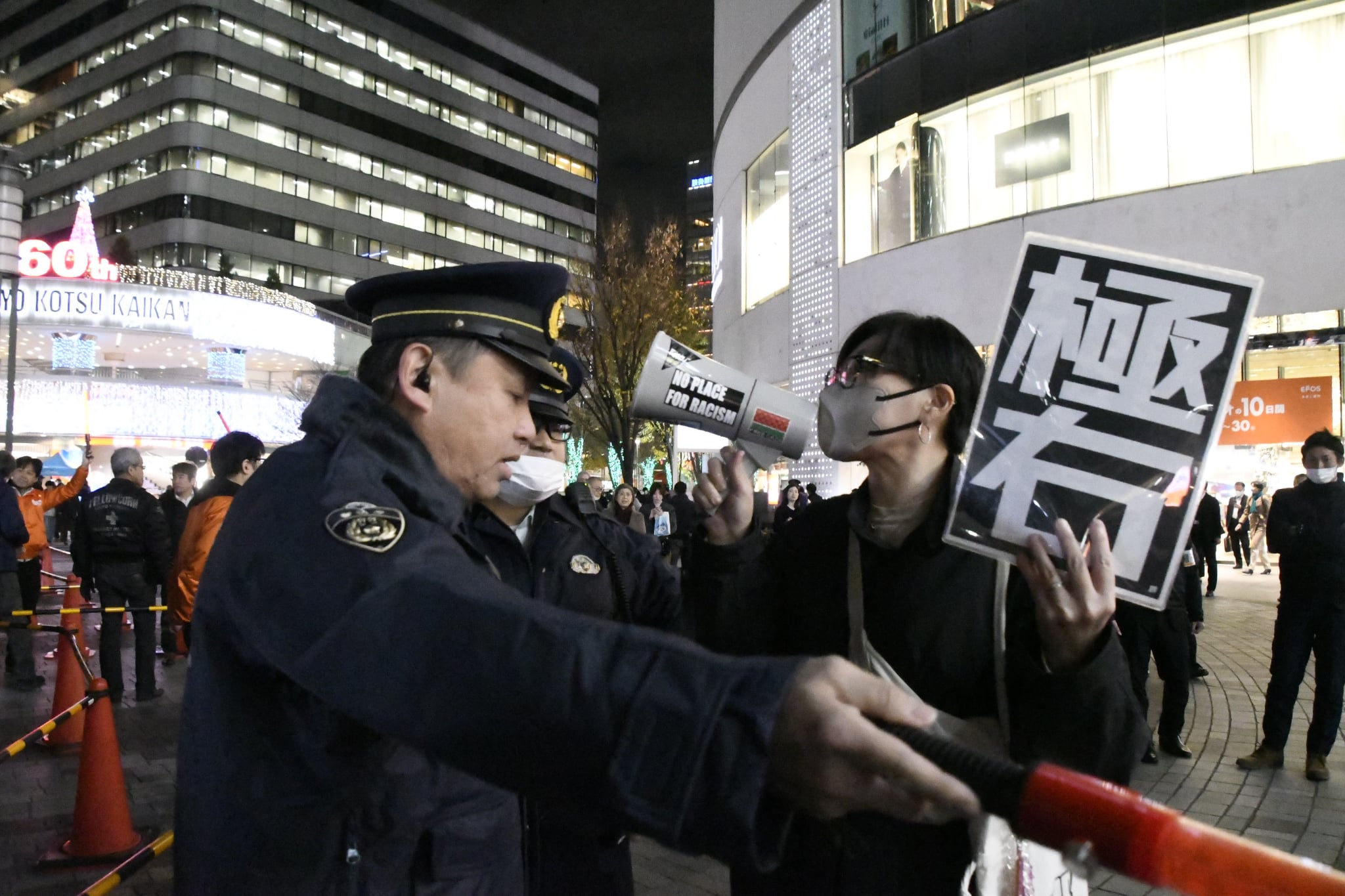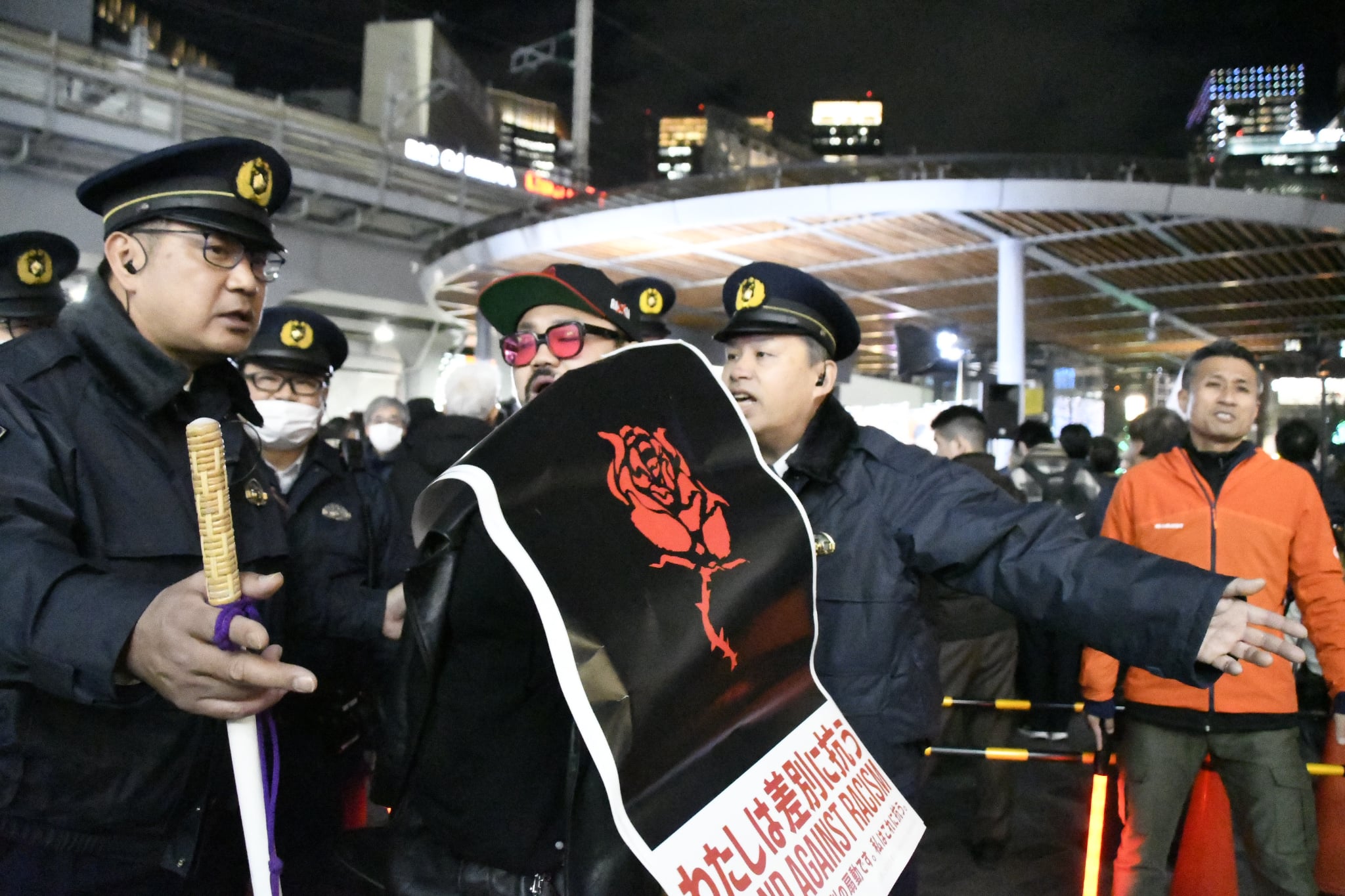 カウンター1人に複数の警察官が付いた。写真を撮っている田中も警察に排除されそうになった。「(カウンター諸氏を)煽るから」というのだ。