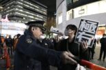 警察はカウンターに貼り付いた。=26日、有楽町 撮影:田中龍作=