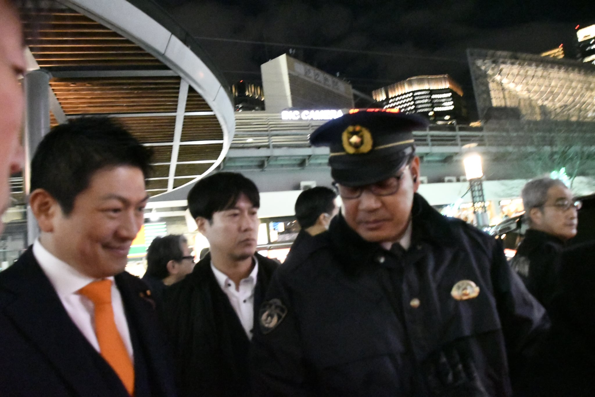 会場の有楽町駅前は複数の閣僚が登場する街宣ではないか、と見間違うほど大勢の制服私服の警察官で一杯になった。50人はいただろう。